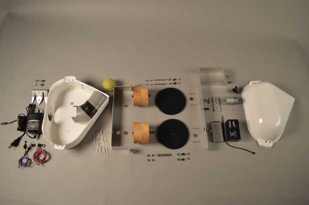 mi perro le encanta jugar a la pelota, pero encontró difícil de jugar con él todo el dia. Construyo mi primer lanzador de bolas de versión que utiliza rápido girando el motor para hacer girar la bola hacia fuera Ve el enlace http://www.youtube.com/wa