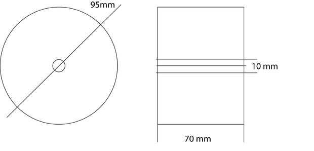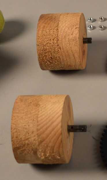 Para hacer que las ruedas perfectamente redondas, puede utilizar una sierra o un torno. Las dimensiones se ilustran en el dibujo. Si se trabaja con la sierra, el grosor de 70 mm se puede crear por ruedas más finas pegado a unos de otros.
