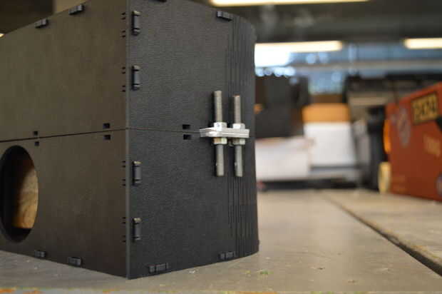 Se trata de un lanzador DIY construido con trajes Makeblock . Se utilizaron dos motores CNC para ruedas de fricción, de la cual la velocidad puede alcanzar 120km/h teóricamente. La máquina es lo suficientemente fuerte debido a su estructura metálica.