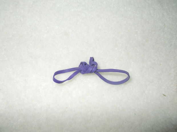 Haz 2 gomas. Doble uno sobre el otro hasta que esté apretado (cuadro 1). Luego tomar los dos extremos y el doble de nuevo. Entonces doble más gomas en. Utilice cinco bandas de caucho.