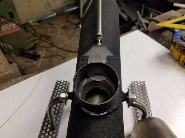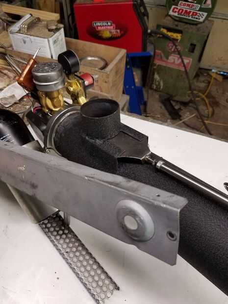 • Usando un pedazo corto de tubería de 2 1/2", tachuela soldarlo a la parte superior de los rieles de puerta de cámara. Este es el tubo de "alimentar" a la cámara.
