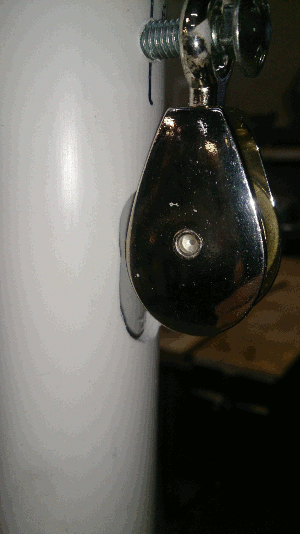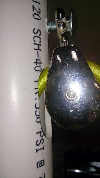 Los primeros agujeros hechos fueron no lo suficientemente cerca para el agujero de 5/16" y tuvieron que ampliarse. El bungee no pasarían libremente a través del orificio.