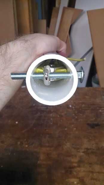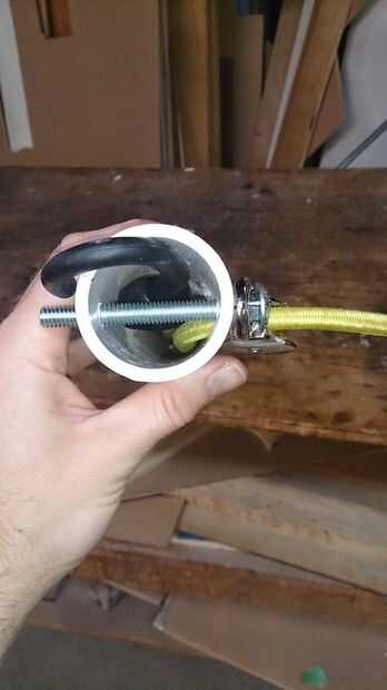 El amortiguador auxiliar pasará a través de dos poleas. La primera polea se permite que cuelgue libremente dentro del PVC. La segunda polea está montada con un perno de 5/16-18 hacia fuera cerca el agujero oblongo.