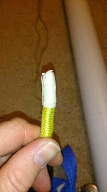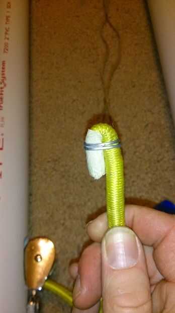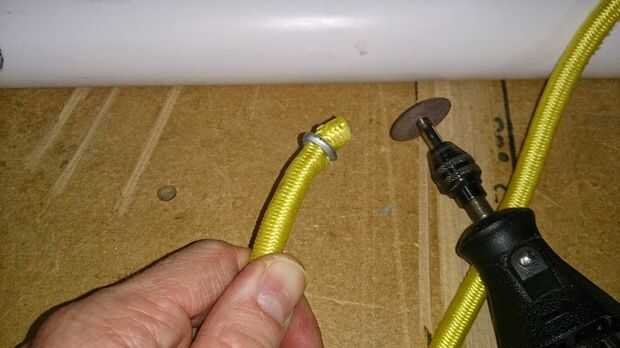 Cubrir los extremos sueltos con cinta para mantenerlos intactos. Usando la llama para fundir los extremos de lo bungee fusible el nylon pero también quemar la goma interior. Este olor horrible por lo que la cinta es preferible.