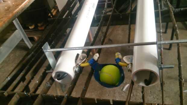 Poner una varilla roscada a través de las abrazaderas de las rectas para que los tirantes descansan en las tuercas. Se trata del travesaño superior.