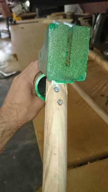 orificios de 1/4" están perforados de la parte posterior de la manija en la ranura.