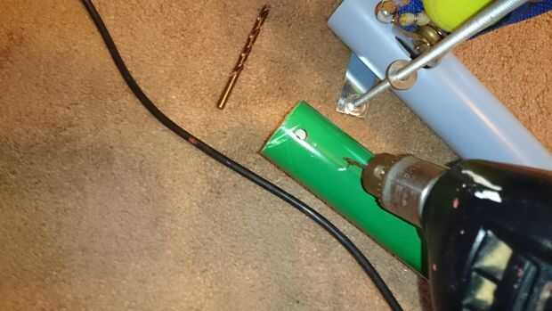 Acabado del agujero por taladrar un agujero de 5/16" a través de la PVC.