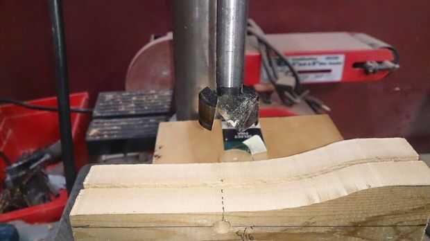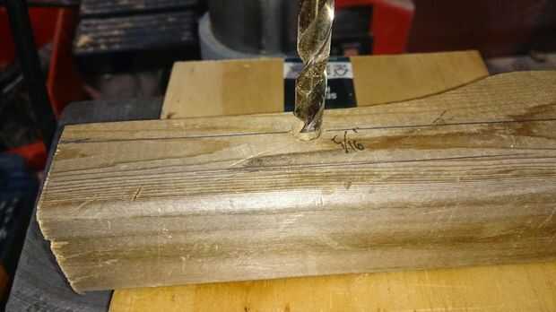 Para permitir el apoyo de la esquina pasar a través del mecanismo de disparo que debe perforarse un orificio de 1-1/16". Asegúrese de centrar este agujero en el nuevo agujero de 5/16 en 2 x 4.