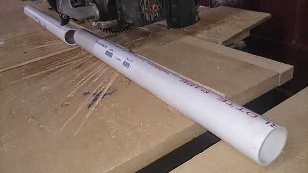 Cortar dos tramos de 30 pulgadas de 2" tubos de PVC. El PVC se muestra en algunos de estos cuadros es 1-1/2" que fue utilizado en el primer intento pero 2" PVC es necesario.