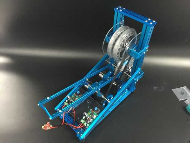Se trata de un lanzador DIY construido con trajes Makeblock . Se utilizaron dos motores CNC para ruedas de fricción, de la cual la velocidad puede alcanzar 120km/h teóricamente. La máquina es lo suficientemente fuerte debido a su estructura metálica.