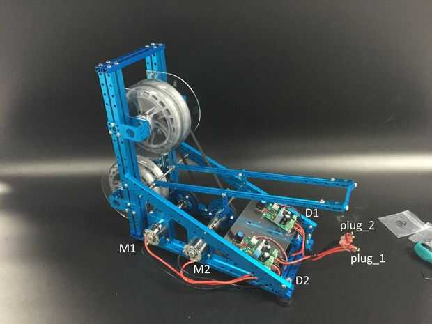 Se trata de un lanzador DIY construido con trajes Makeblock . Se utilizaron dos motores CNC para ruedas de fricción, de la cual la velocidad puede alcanzar 120km/h teóricamente. La máquina es lo suficientemente fuerte debido a su estructura metálica.