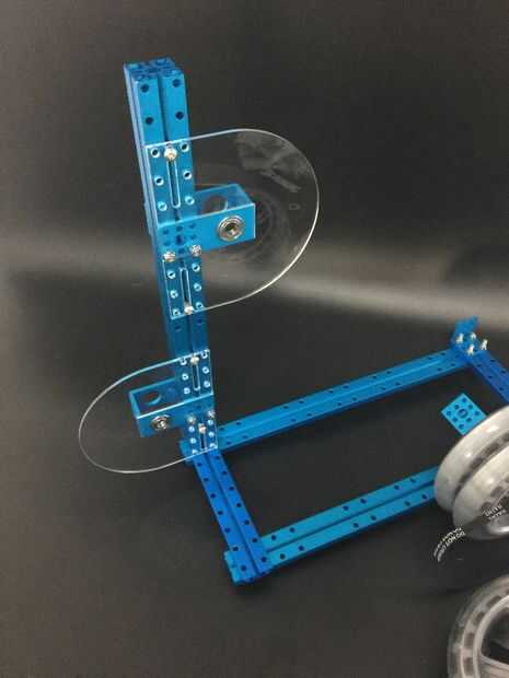 Se trata de un lanzador DIY construido con trajes Makeblock . Se utilizaron dos motores CNC para ruedas de fricción, de la cual la velocidad puede alcanzar 120km/h teóricamente. La máquina es lo suficientemente fuerte debido a su estructura metálica.
