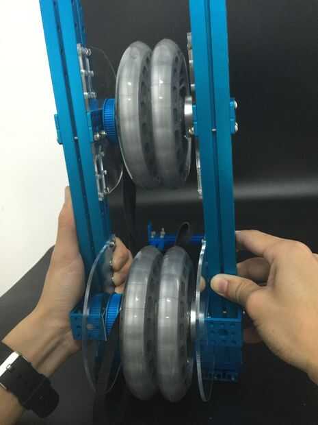 Se trata de un lanzador DIY construido con trajes Makeblock . Se utilizaron dos motores CNC para ruedas de fricción, de la cual la velocidad puede alcanzar 120km/h teóricamente. La máquina es lo suficientemente fuerte debido a su estructura metálica.