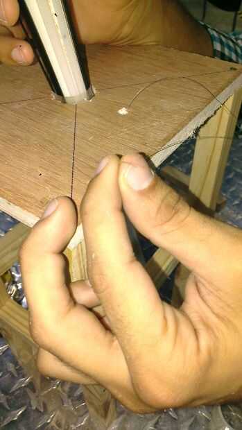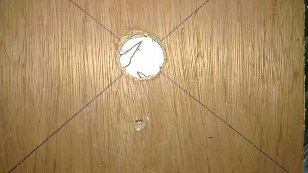 1-hacer hoyo en el centro de la madera 71/2 x 6'', de una pulgada de diametro
