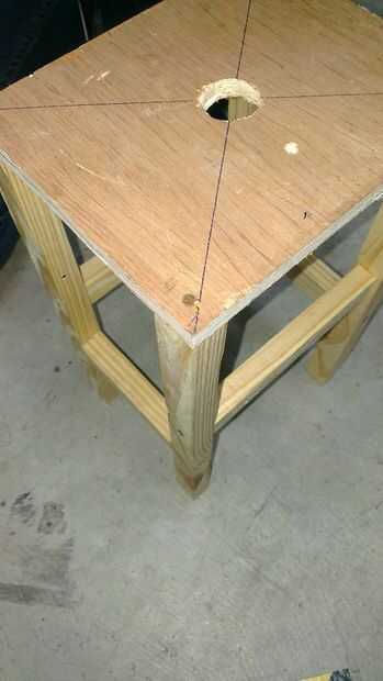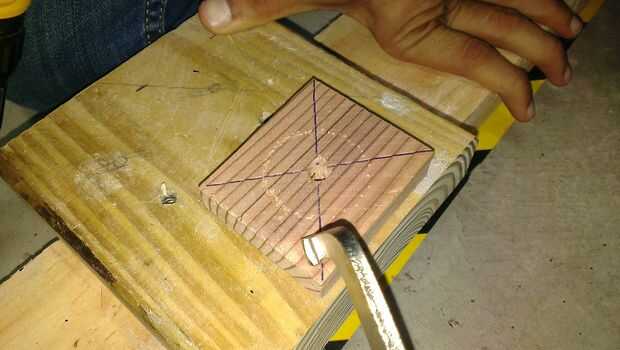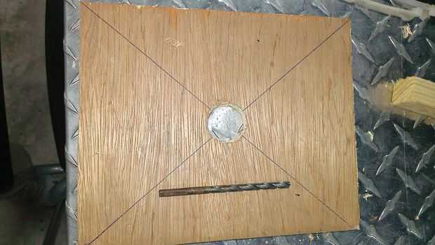 5 - hacer agujero en el centro de la madera 3 x 3 x 1 de 1 1/2 ''
