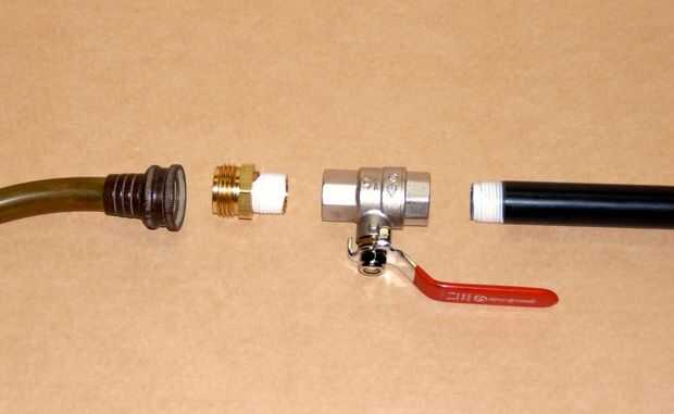 - Atornille el tubo de la canalización vertical en la válvula de bola, en el extremo donde el mango es señalando cuando la válvula está abierta. Apriete firmemente.