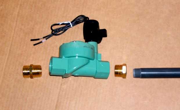 - La válvula automática en línea reemplaza a la válvula de bola. Envuelva cinta de plomería Teflón alrededor de los extremos macho de los adaptadores. Atornille el extremo macho del adaptador de la manguera en el lado "in" de la válvula en línea. Atornille el otro adaptador en el lado "out".
