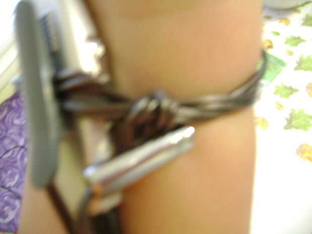 Mantener wraping incluso hasta los pedazos de oreja caída en su propios u así no ve un cable colgando