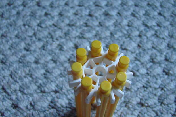 primero tome 8 varillas amarillas y conéctelos en el conector blanco.