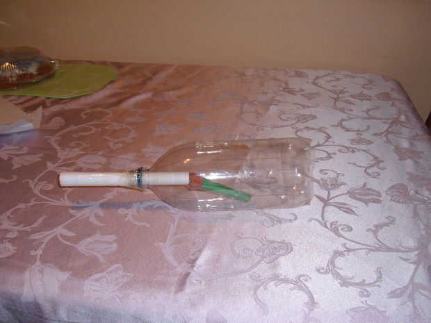 enrollar un trozo de papel y cinta adhesiva. Luego, con una cuarta parte del papel y utilizarlo como la Granada. Luego, tomar el papel de desecho y un miniatura cuadrado o círculo y en uno de los lados con cinta adhesiva para podría pegar esa pieza en el agujero dentro de la boquilla que está dentro de la botella. Asegúrese de que usar la punta que lo postee al principio de este instructable de cómo disparar la Granada.