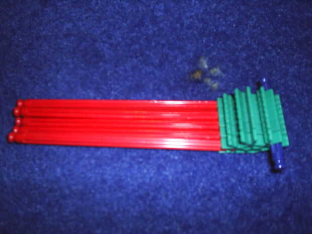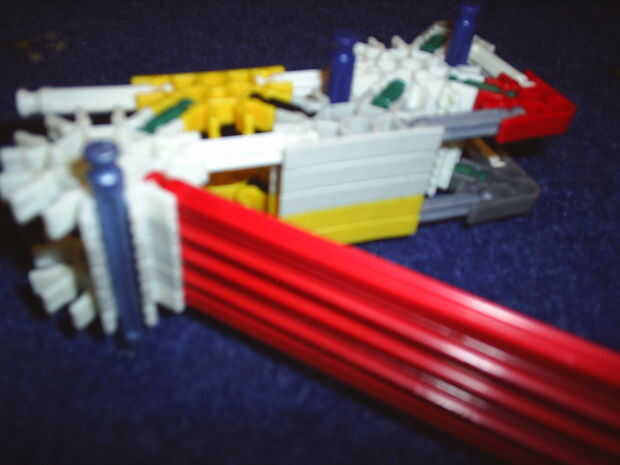 aquí es un nuevo concepto en armas de K'nex. No critique porque parece simple, realmente funciona realmente muy bien y lanza a K'nex mucho mejor de lo que puede parecer. Estaba trasteando por el otro día con una barra gris y un conector gris y encont