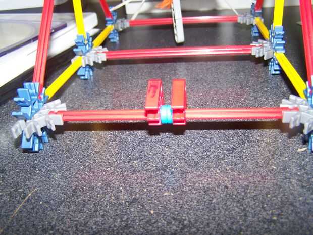 1. en una barra roja broche de presión en 2 connectorin roja la en el centro de la ranura en el centro de la varilla y separarlos con espaciadores azul 2.