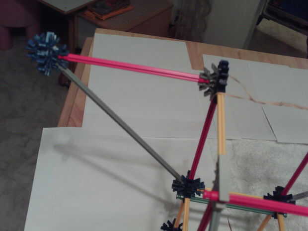 esta es mi bomba doble KVG. es potente y fácil de hacer.conteo de piezas:dos pernos de barras amarillos4 conectores naranjados barras verdes12 separadores gris4 pequeñas bandas de cauchoy eso es una bomba doble de KVG!