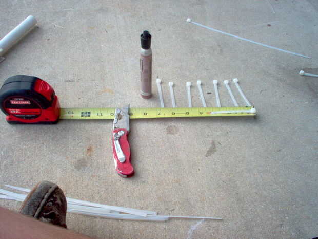 tomar tus lazos zip (utiliza ocho pero terminó con sólo 5) y cortar de la nob en la parte superior hacia la parte posterior 3 y 1/2"(ver imagen)