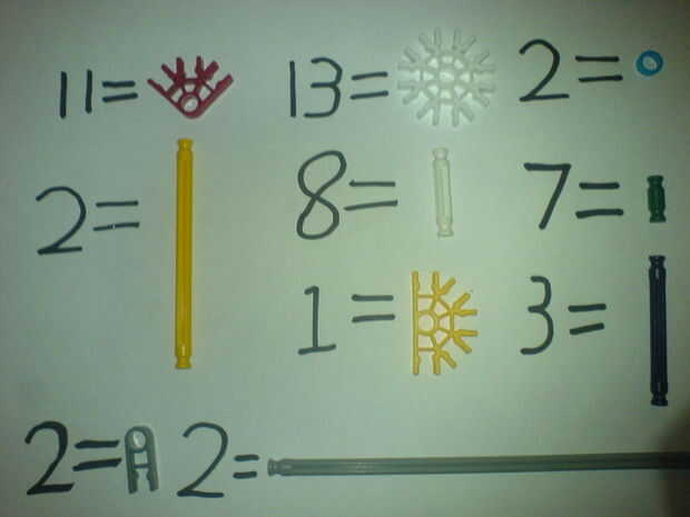 yo he estado experimentando con KVG y vino para arriba con esto. disfrutar dePaso 1: lista de piezasbueno aquí es lo que necesitaBarras:Verde - 20Azul - 9Amarillo - 1Conectores:Naranja - 30Amarillo - 4Azul - 8Otros:Banda elástica - 1Espaciadores de a