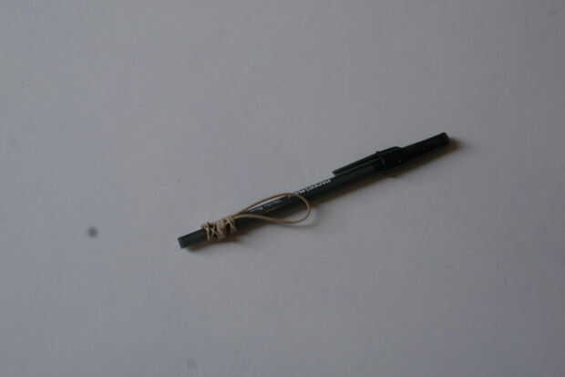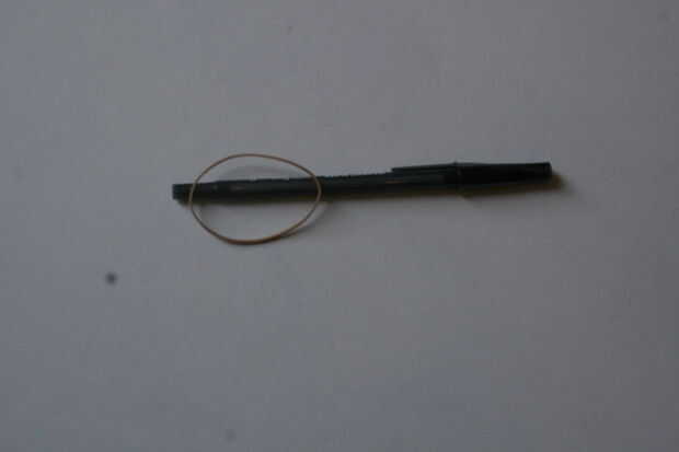 es muy sencillo de hacer. Primero usted necesita tomar un lápiz aparte. Las únicas partes que necesitas de él son el tubo y el cartucho de tinta. Corte el tubo de tamaño medio o lo que sea que desee. Corte el caucho de la banda así en lugar de un buc