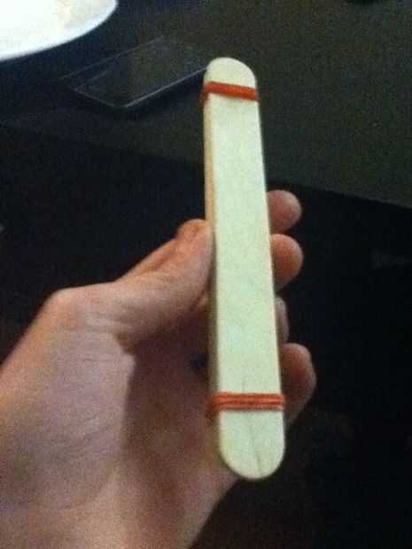 5 palos popcicle uno encima del otro y conectar con 2 bandas de caucho