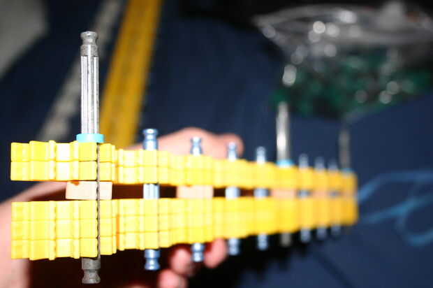 ¡ Hola!El Lanzador de barra de flexión es un nuevo tipo de lanzador de bolas de K'nex. El lanzador hace no utilizar gomas elásticas, en cambio, como su nombre indica, utiliza una barra de flexión para lanzar bolas. Esto elimina la necesidad para la s
