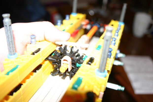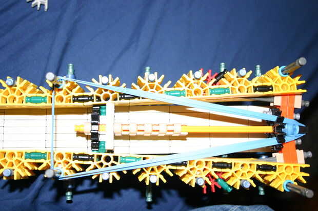 ¡ Hola!El Lanzador de barra de flexión es un nuevo tipo de lanzador de bolas de K'nex. El lanzador hace no utilizar gomas elásticas, en cambio, como su nombre indica, utiliza una barra de flexión para lanzar bolas. Esto elimina la necesidad para la s