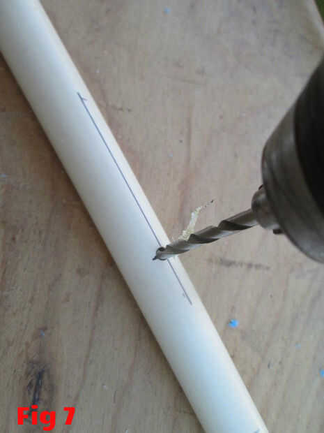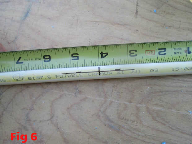 Marque 4" en cada línea que trazaste. Asegúrese de medir desde el extremo del mismo para ambas marcas en caso de que el tubo no es exactamente 8" de largo. (Fig 6)