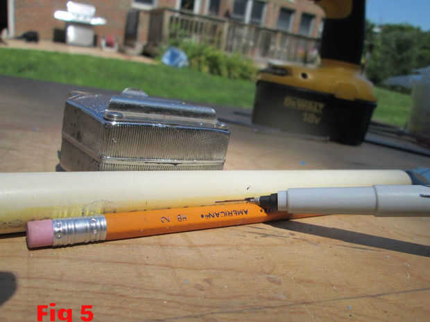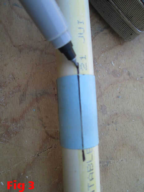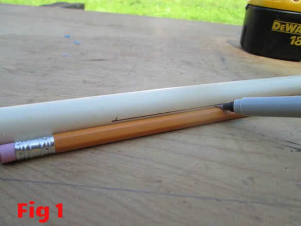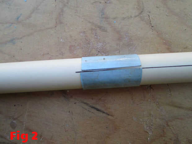 Vamos a empezar con una pieza fácil. Tomar 8" pieza de la tubería de CPVC y hacer una línea de 2" de largo int del tubo por un lado utilizando el lápiz como guía. (Fig 1)