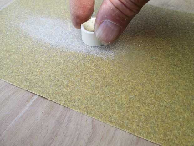 Luego coloque un pedazo de papel de lija sobre una superficie plana y suave el corte de la Sierra