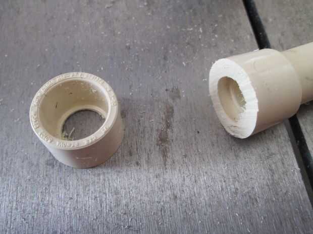 Corte un acople de CPVC de 1/2" a la mitad. Usé una sierra pequeña, pero se puede hacer con una sierra para metales.