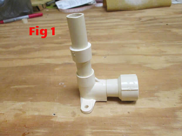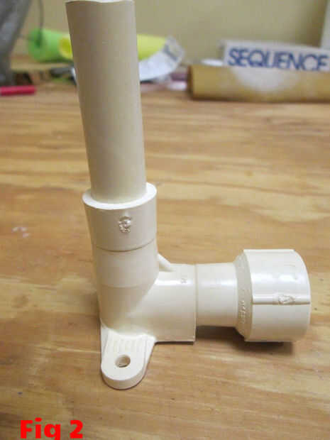 Del hoyo un poco pegamento para PVC el tubo debajo del acoplamiento mitad y deslice el acoplamiento mitad hasta topar con el codo con alas. (Fig 2)