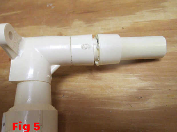 Deslice el otro acoplamiento mitad - O anillo soporte del tubo de lanzamiento con el extremo más grande hacia el tubo de lanzamiento. Aplicar pegamento (Fig. 4) y cuidadosamente Deslice el acoplamiento mitad a la línea (Fig. 5)