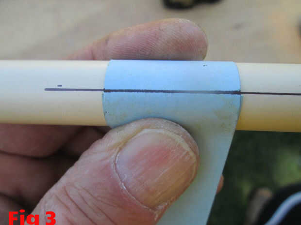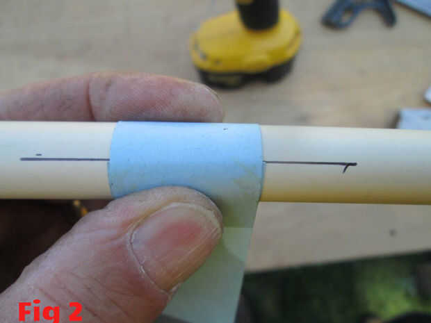 Coloque el tubo sobre una superficie plana y coloque un lápiz firmemente contra él. Dibujar con un rotulador, una línea a lo largo del tubo utilizando el lápiz como un borde recto. (Fig 1)