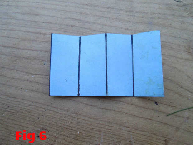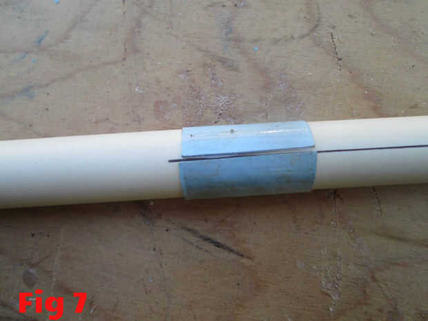 Envuelva la plantilla alrededor del tubo y poner un trozo de cinta en la plantilla de papel. La plantilla debe deslizarse en el tubo y debe poder deslizarse dentro y fuera. (Fig 7)