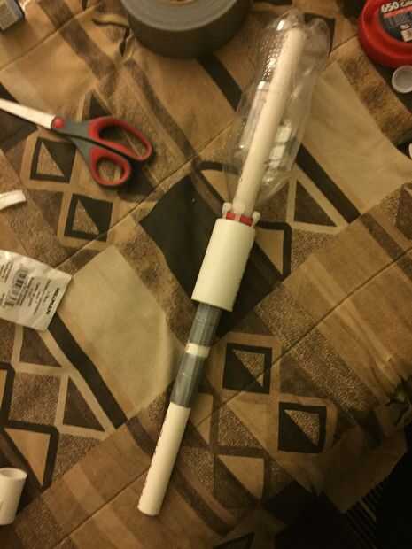 3. Conecte la (bomba de bicicleta) sobre la aguja y tiene un amigo el aire en el lanzador y la botella.
