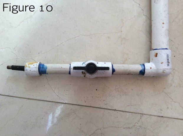 Una vez que esté ajustada, aplicar pegamento en la parte exterior de la tapa y alrededor de la válvula del neumático. Utilizando sellador y el imprimador, pegue este cap a la tercera pieza de tubería de 4 pulgadas largo 1/2 pulgada. En el extremo de esa pieza de la pipa, pegar el el tercer y final la válvula, la válvula de sello de aire. En el extremo de que la válvula, pegar la pieza final del tubo de 4 pulgadas largo 1/2 pulgadas PVC. Sello de 1 pulgada a 1/2 pulgada codo curva en el extremo abierto de uno de los tanques de presión. Luego, sellar el extremo de 1/2 pulgada a la tubería de la válvula. El Lanzacohetes es hecho!!!!!! Recuerde hacer todas las conexiones antes de usar. La figura 10 muestra el suministro de aire completo. La figura 11 muestra el lanzador completo.