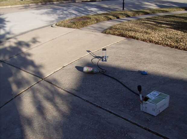 Cuando no de disparos de cohetes, empuja una bellota en el extremo de la manguera y le tira en el fondo de saco. También se conecta una manguera de goma hasta el final de la Y, desconecta todo y va móvil, disparo del cohete o bellotas.