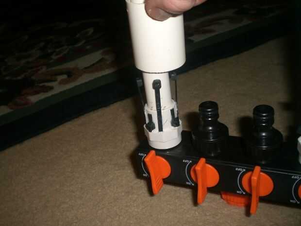 El splitter de 4 vías está disponible por $5 por lo tanto mi deseo de utilizarla. Si el divisor no está disponible económicamente cerca de usted y desea mantener el costo bajo, podría usar un tubo de lanzamiento y atornille el adaptador de manguera de rosca macho. y tienes un solo lanzador.