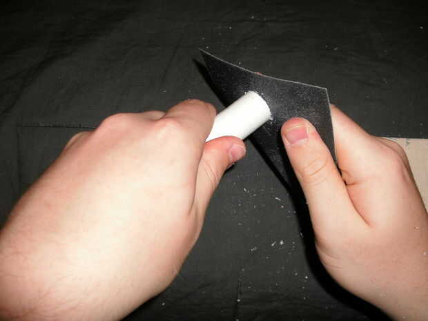2. con el pedazo más grande, pase el borde exterior mientras gira el tubo.