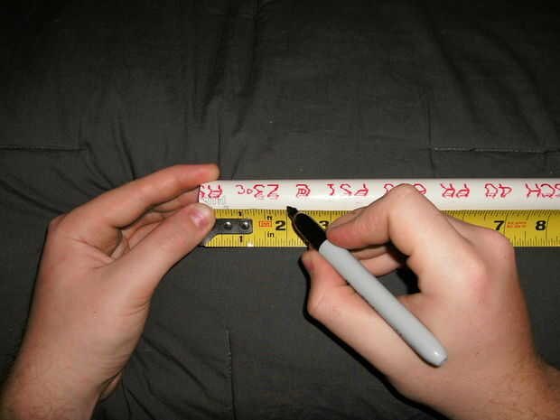 Puesto que las longitudes exactas no son demasiado importantes, acaba de obtener la cinta métrica hacia fuera y ponga una marca en las siguientes marcas de pulgadas: