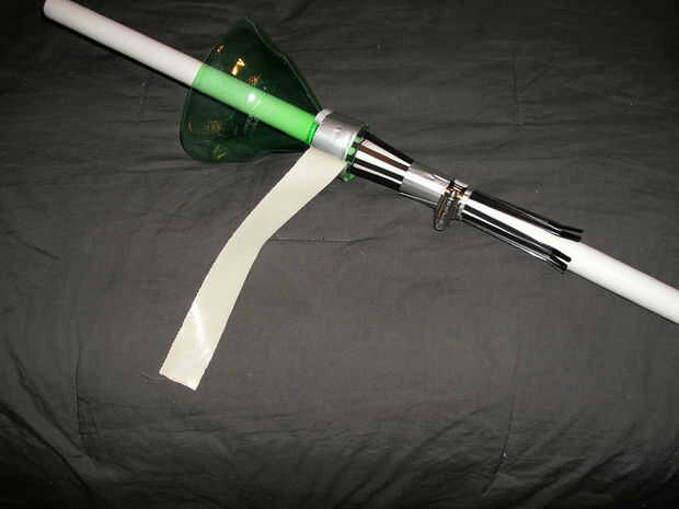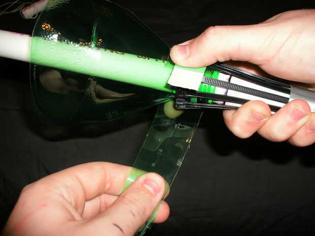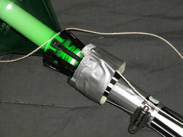 7. amarra alrededor de la botella y tiras de cinta del conducto como se muestra en la imagen.