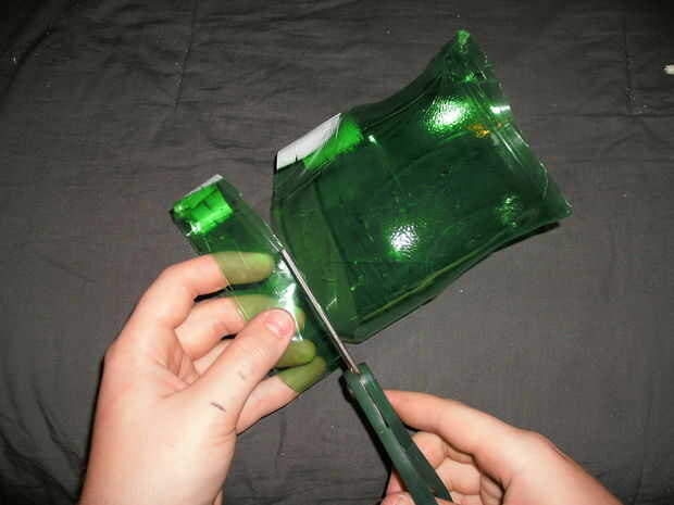 1. Corte la parte superior e inferior de la botella. Si es posible, hacer una botella que no tiene estrías en la zona media.