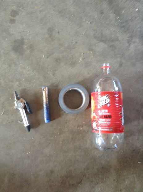 Necesita los siguientes materiales 1. Dos litros 2. Conducto de cinta 3. 3/4 de pulgada PVC de 4 de diámetro externo. Compresor de aire